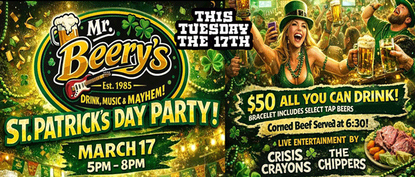 Tuesday March 17 St Patts Day w/ Crisis Crayions ++ beery calander | Posted March 10 |